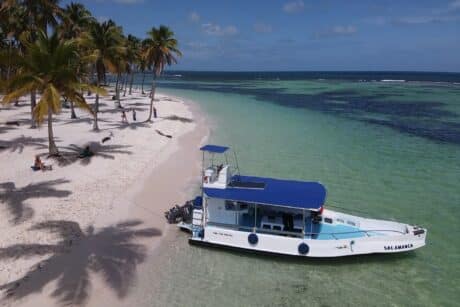 Visit Isla Saona, currently the most popular excursion offered in the Dominican Republic. Explore this quintessential tropical beach with swaying palm trees, bone-white sand, and